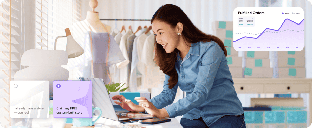 Connect your existing store or receive a custom-designed store fully optimized for sales and preloaded with at least 20 proven, high-demand products..